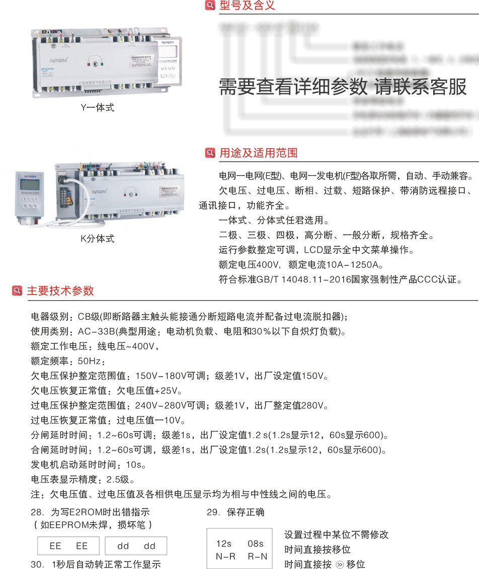 NMQ2-Y/K63~1250A智能型雙電源自動轉(zhuǎn)換開關(guān)CB級