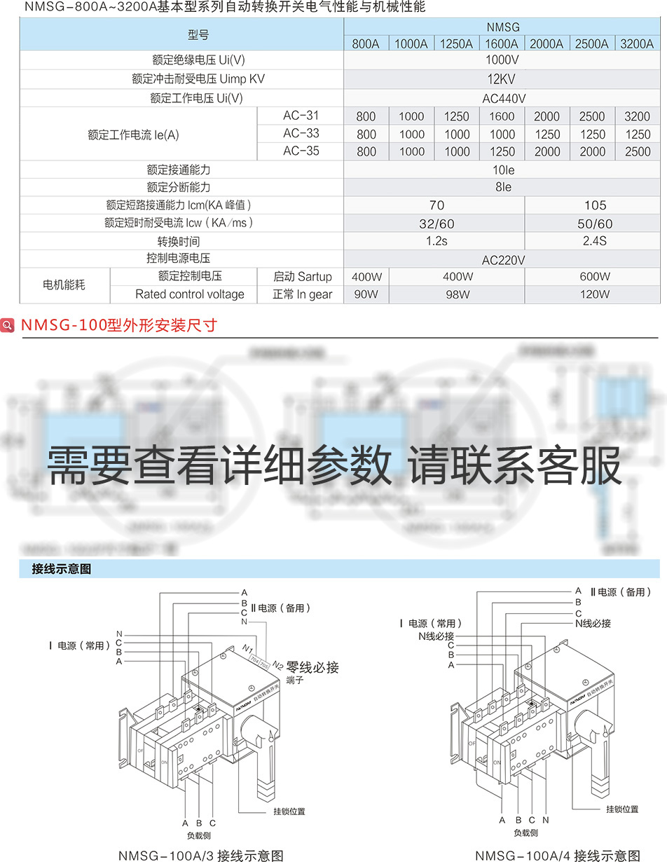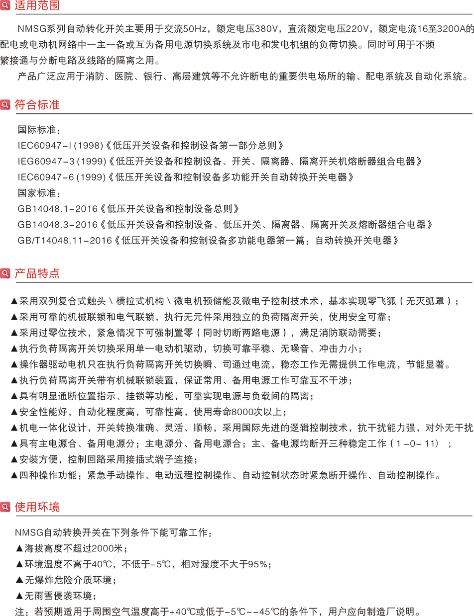 NMSG-100~4000A隔離型雙電源自動(dòng)轉(zhuǎn)換開關(guān)PC級(jí)