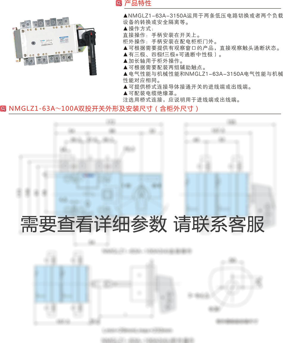 NMGLZ1-63A~3150A轉(zhuǎn)換隔離開(kāi)關(guān)(雙投開(kāi)關(guān))上下組合